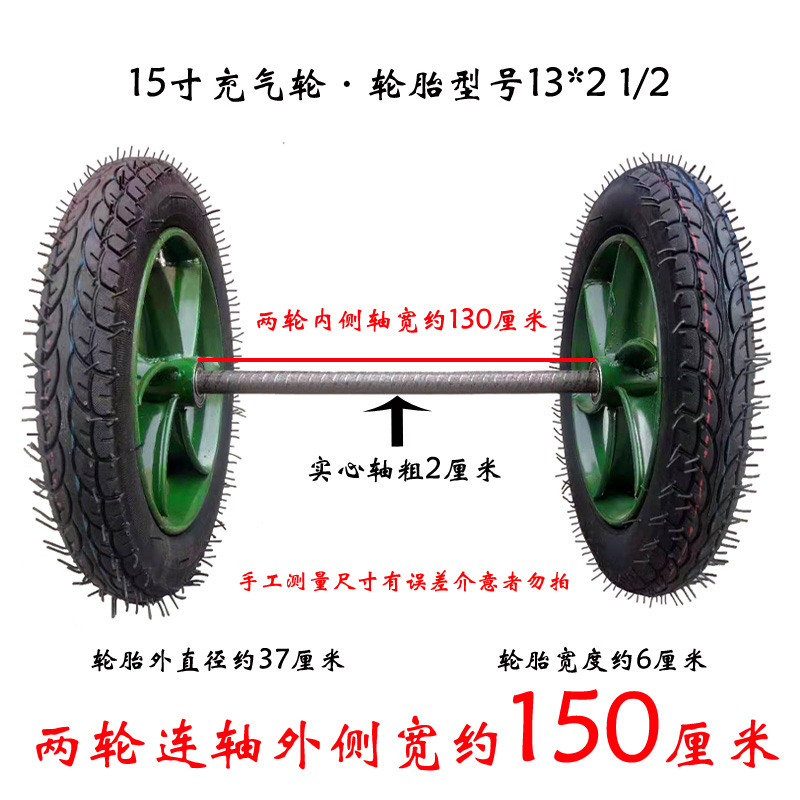 15 inch trolley rubber pneumatic tire tire two-wheel connecting shaft 13*21 2 carriage wheels dining car tiger caster