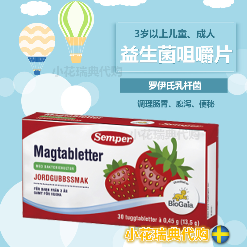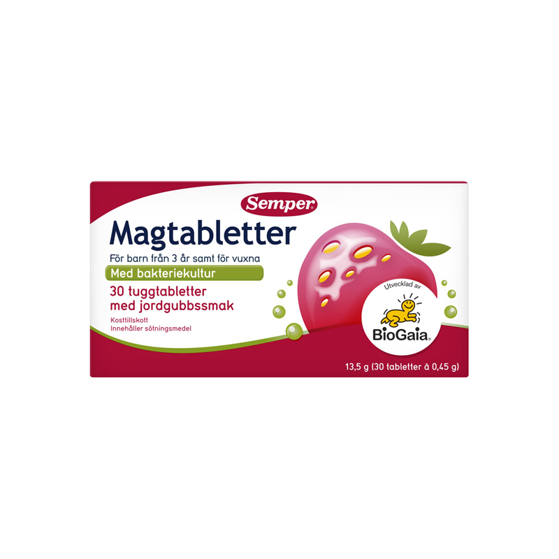 Spot Swedish original Semper Magtabletter probiotic chewing tablets of strawberry flavor