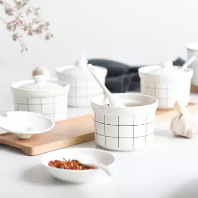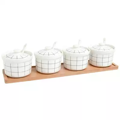 Ceramic seasoning cans kitchen supplies seasoning cans set condiment boxes seasoning boxes salt jars seasoning bottles four-piece set