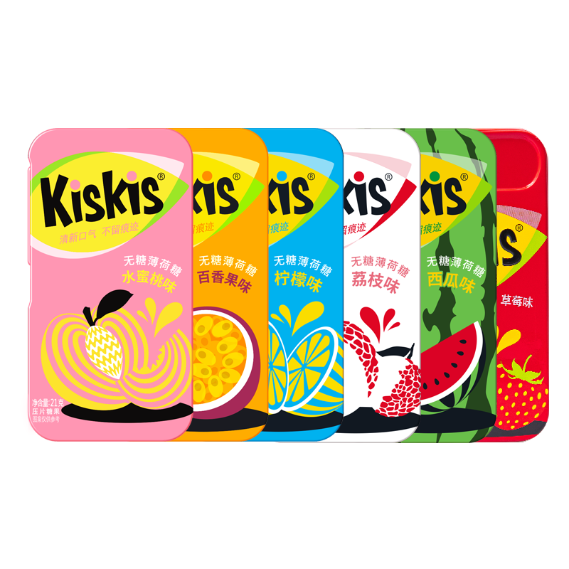 (6 boxes) Kuzi KissKis sugar-free mints peach sugar kiss deodorant fresh breath candy 21g