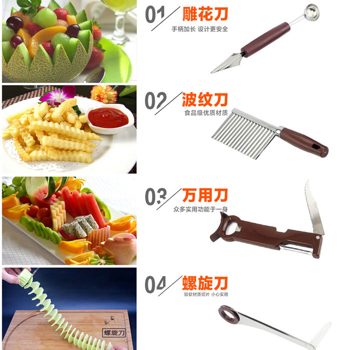 Engraving Knife Chefs Sculpted Tools Suit Flower Style Fruit Parquet Carved Knives Home Food Fruit Pan Molds