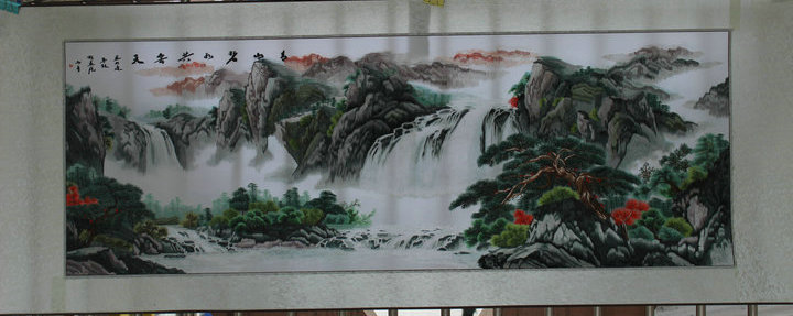 Suzhou Embroidery Painting Soft Mounting Finished Finished Decorative Painting Hanging Ornament Gift Green Mountains Clear Water Total Cloud Sky Living Room Defeng Imitation Handwork