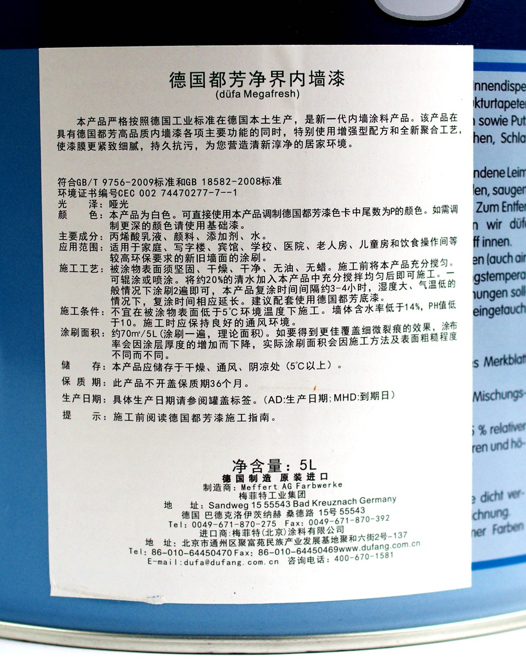 German original imports of Du Fang Pure Environmental Protection Blue Angel Certified Child Pregnant Women Applicable Paint Paint Latex Wall Paint