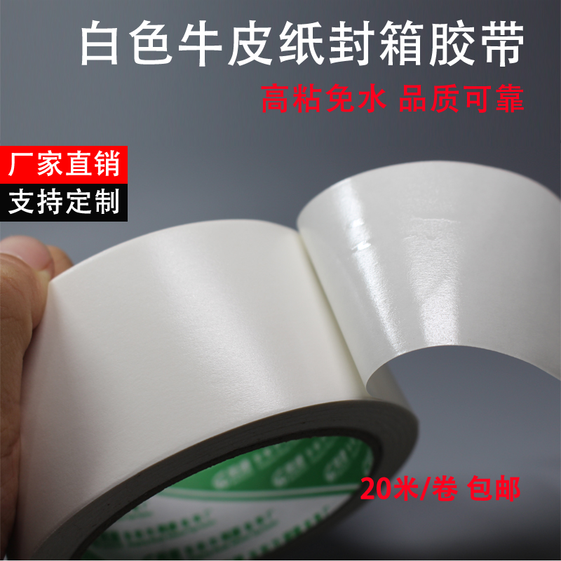 White Thickened Add-Stick Kraft Paper Adhesive Tapes Environmentally Friendly Paper Seal Case Duct Tape Free Self-Stick Packaging Adhesive Tape Paper