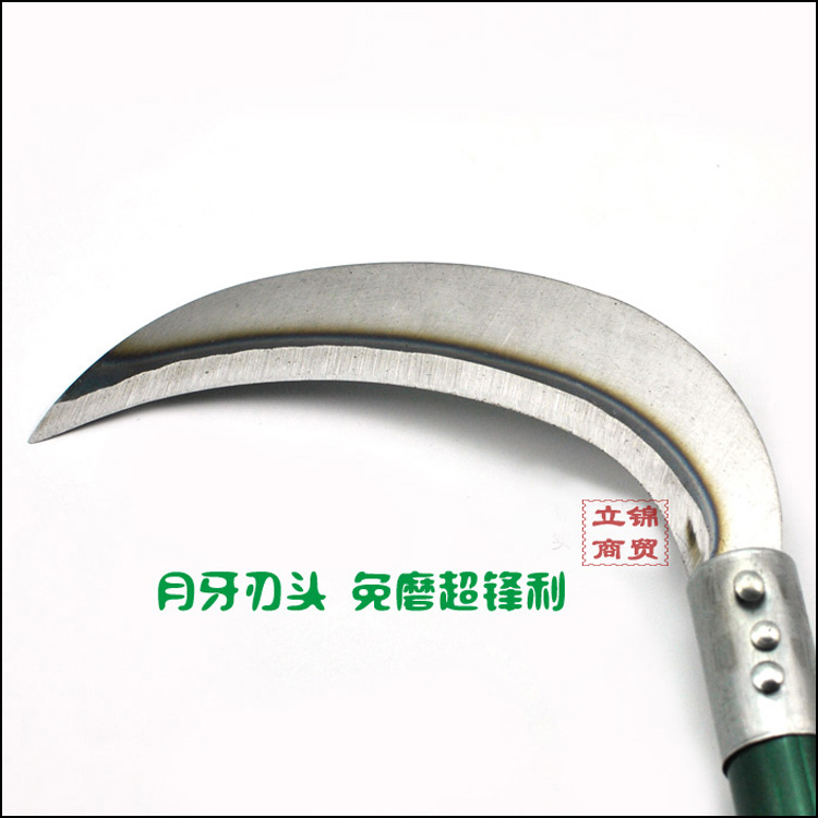Grinding Free Manganese Steel Crescent Sickle Sickle Cutting Grass Knife Outdoor Agricultural Weeding Harvesting Sickle Long Handle Cutting Grass Sickle