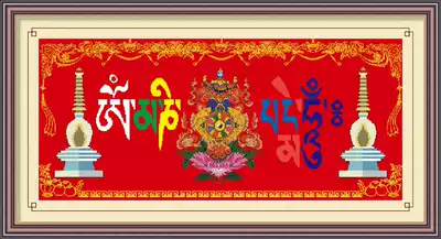3d Tibetan cross stitch six-character mantra printing new living room large Buddhist Tibetan Tibetan