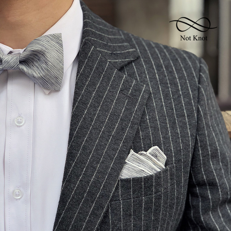 Blue bow tie (carton) gray pocket scarf gray bow tie Note
