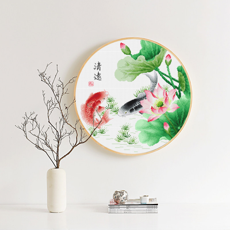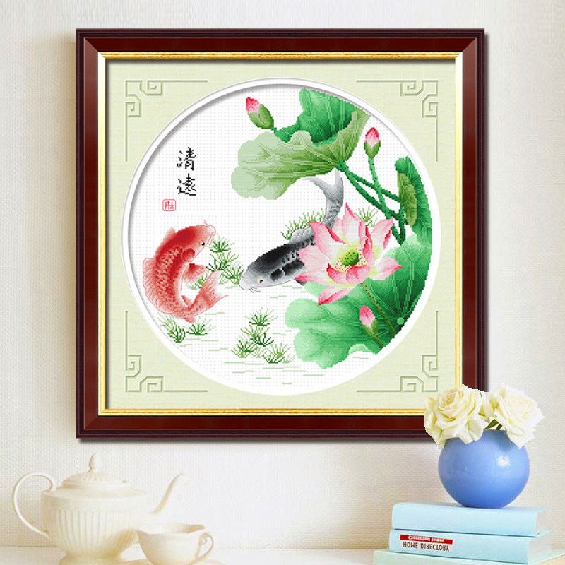 Hanging aisle lotus lotus cross stitch 2022 new embroidered living room small pieces for home embroidery with more fish handmade every year