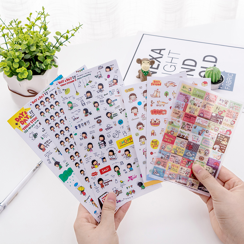 Cat stickers 1 pack 6 rabbit stickers flower cake girl rabbit office worker pig sunshine day