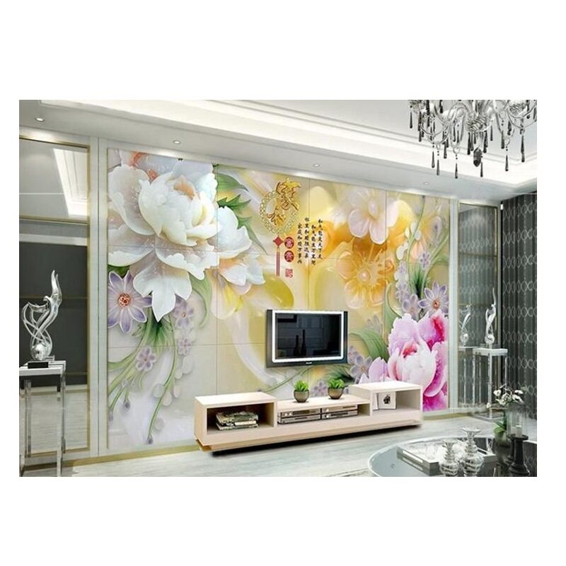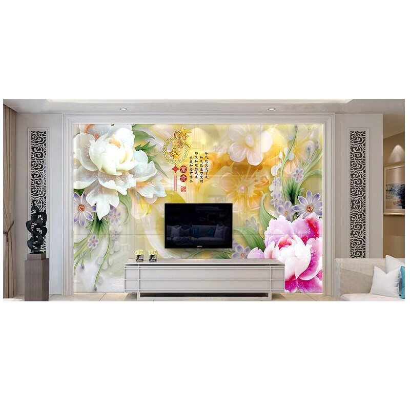 Ceramic tile TV background wall living room modern Chinese high temperature microlite high-grade atmosphere 3D imitation jade carving relief