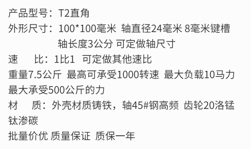 T2 small right angle gearbox steering bevel gearbox reducer tractor cutting table box manufacturers direct sales
