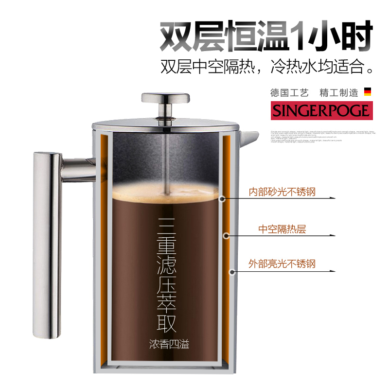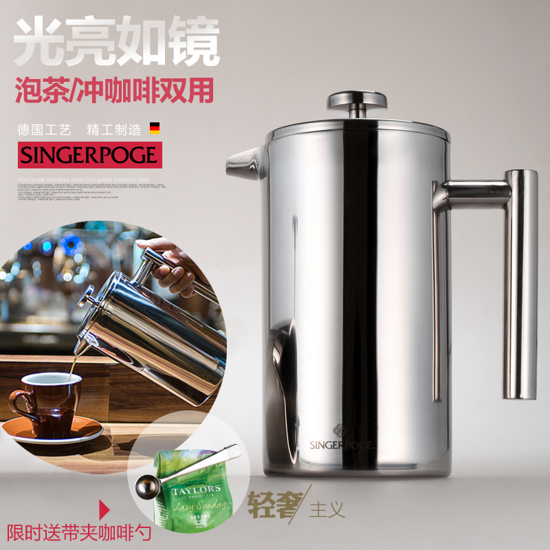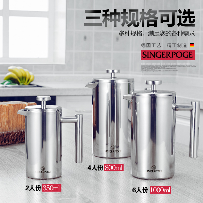 304 double-layer stainless steel French filter press pot hand-brewed coffee pot multi-functional tea maker filter pressure filter household tea pot