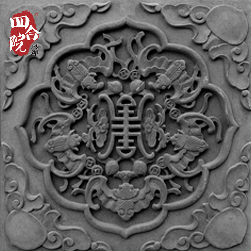 Courtyard brick carved floor tile antique brick carving Chinese style wall relief 40cm decoration material ancient building green brick