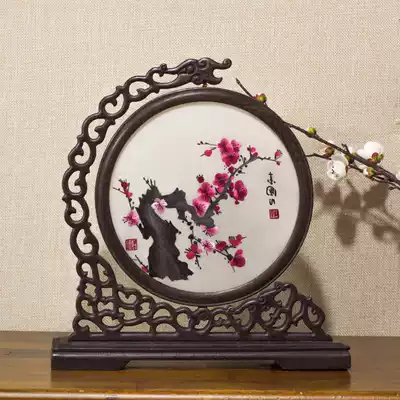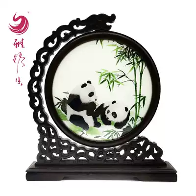 Xiang embroidery double-sided embroidery Pure hand embroidery Non-Shu embroidery Panda solid wood decoration classical screen characteristic gift living room