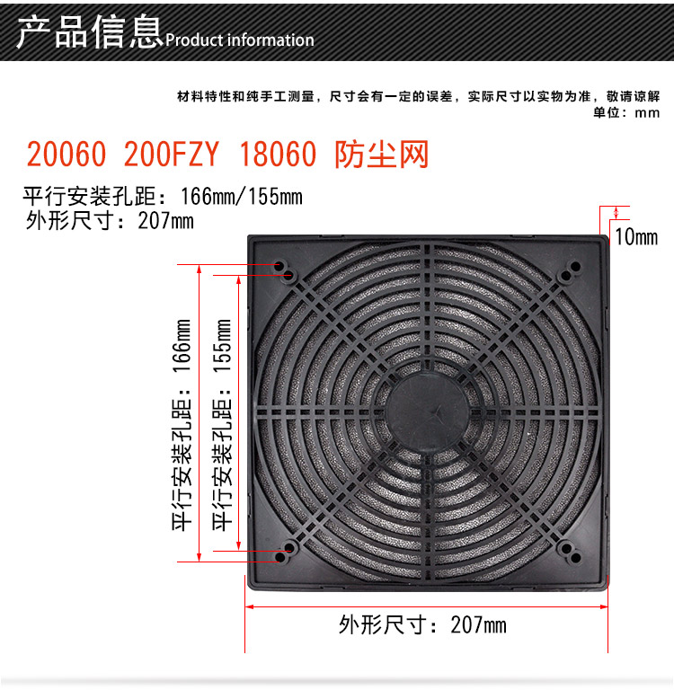 200MM three-in-one dustproof net cover 20CM axial fan cooling fan plastic filter net cover FZY