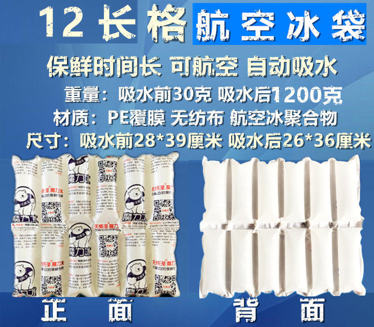 1000-1200ml long grid biological aviation ice bag extra large dry ice bag seafood fruit food preservation and refrigeration