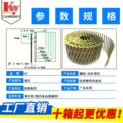 KY brand CN55 coil nail gun thread 38 coil nail wood pallet nail 28mm-100mm pallet nail light rod nail Factory direct sales