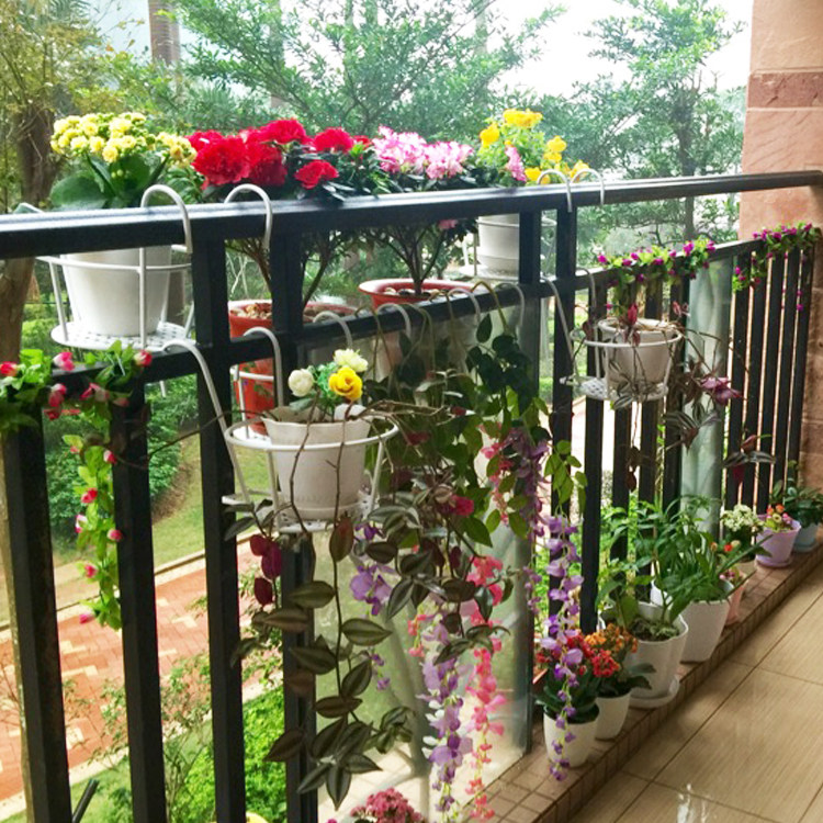 Balcony Iron Art Flower Shelf Flower Basket Window Sill Railing Guardrails Hanging Iron Art Theft Protection Net Flower Shelf Vase Holder