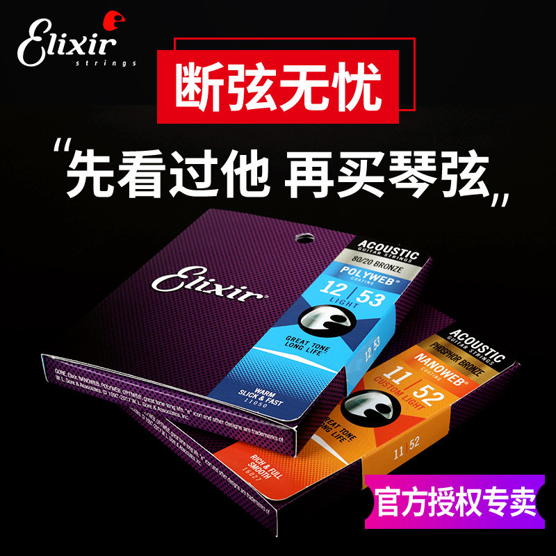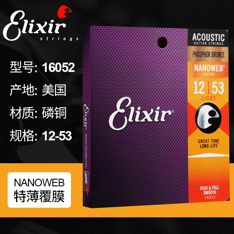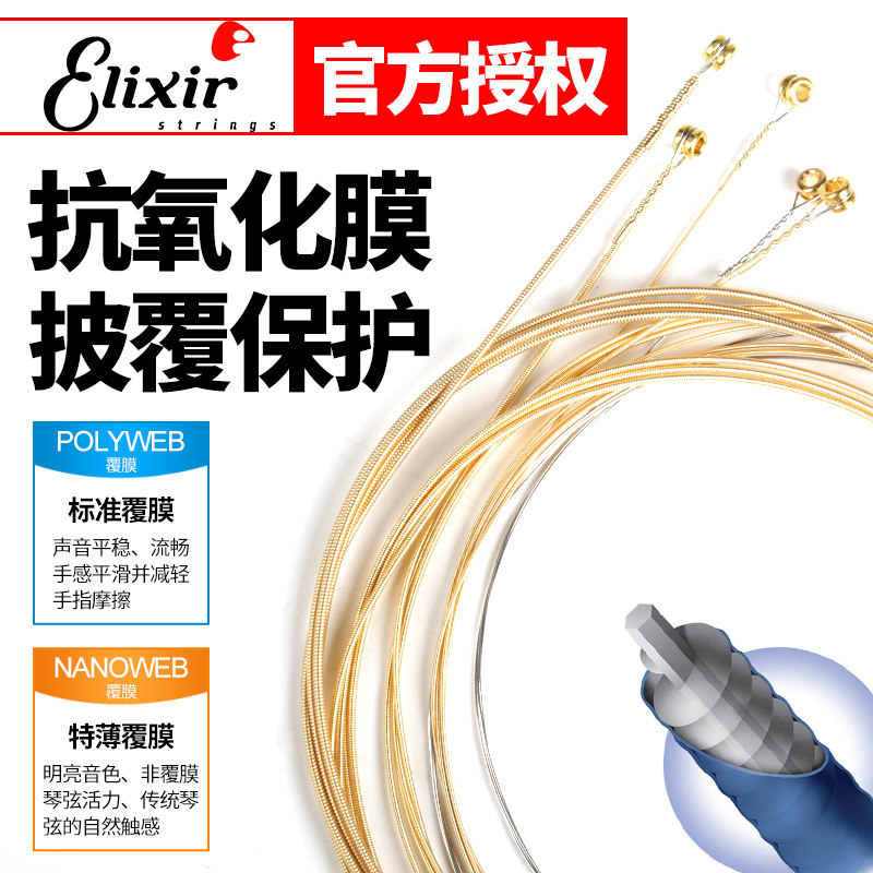 Elixir Ilix 16052 Ballad Guitar Strings Suit NANOWEB Coated Wood Guitar Phosphorus Brass Brass