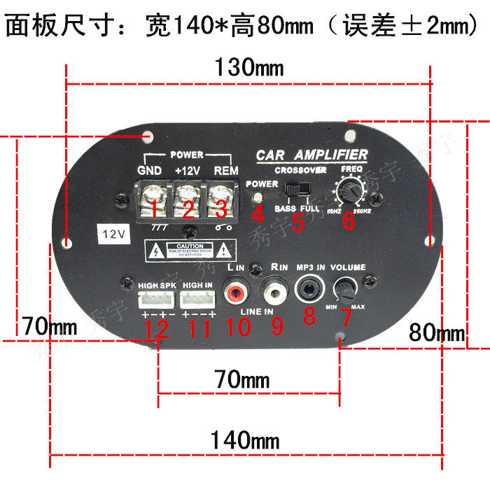 13D elliptical 12V power amplifier board 500W high power full tone pure bass amplifier tube 8 inch Car Subwoofer core