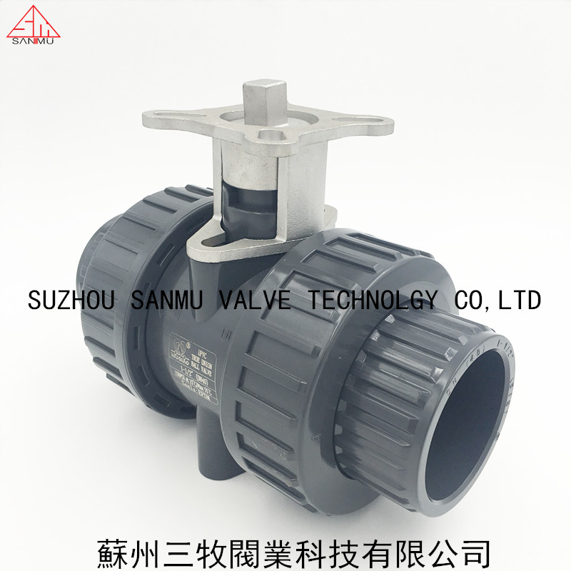UPVC double by order ball valve with bracket shaft plastic ball valve pneumatic electric PVC high platform ball valve 20 110