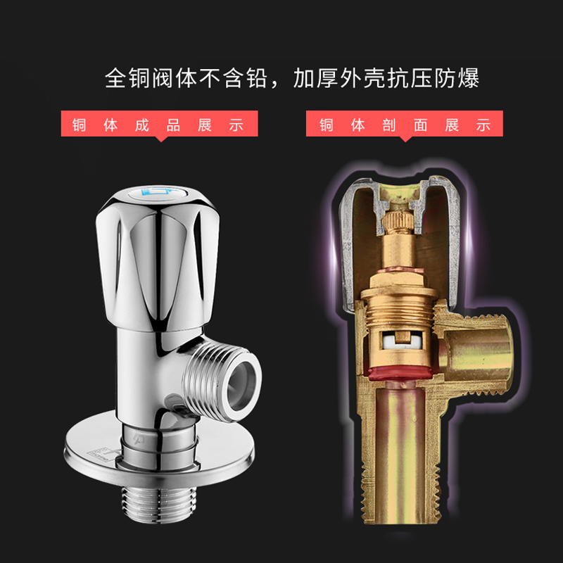 Diving boat all-copper explosion-proof triangular valve hot and cold water universal water heater toilet water stop valve 4 of 8-word valve
