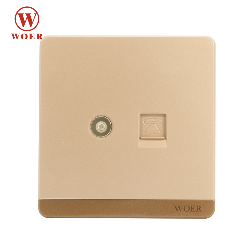 Wall Champagne gold TV plug phone socket panel cable TV phone jack socket V8ZT0103