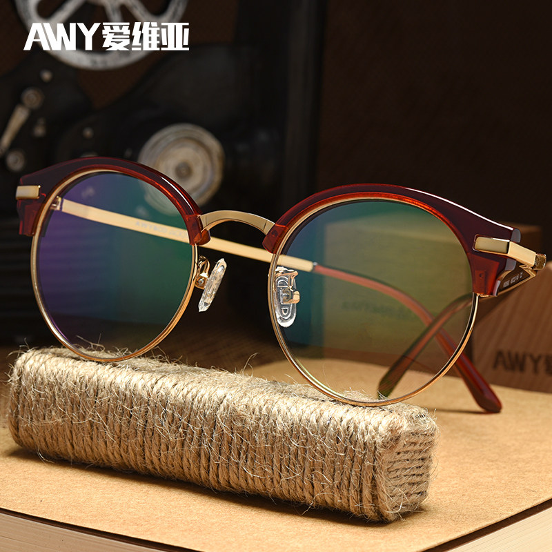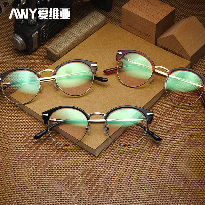 Spectacle frame female retro Korean version half frame round frame black glasses frame male plate can be matched with myopic eyes female small face