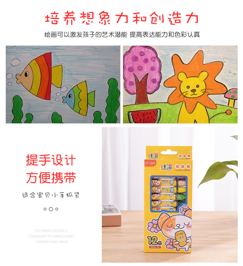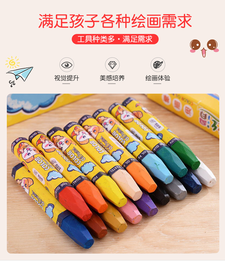 Han Edition Cartoon 12 Color Oil Painting Stick Primary And Middle School Students Wax Pen Children Painting Fine Art Supplies Washable Pen