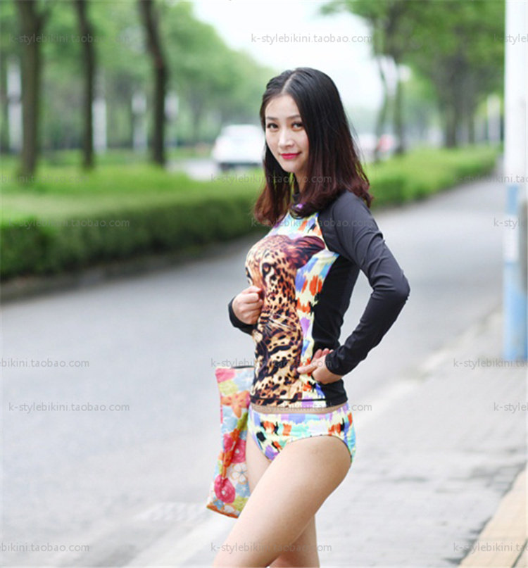 South Korea's new BAO WEN sexy printed two-piece long sleeve sunscreen conservative shading surf speed dry snorkeling jellyfish