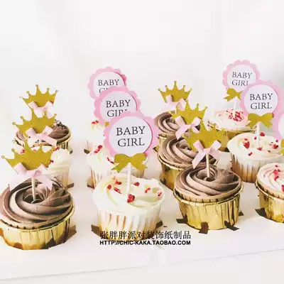 Birthday party BABY feast dessert decoration sweet pink BABY BABY gold powder card 6 pack