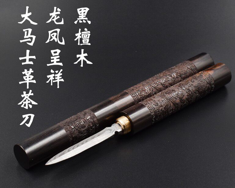 Pu'er tea needle tea knife black sandalwood Longfeng Damascus stainless steel tea cone Pu'er tea cake Sub-tea Tea Road accessories