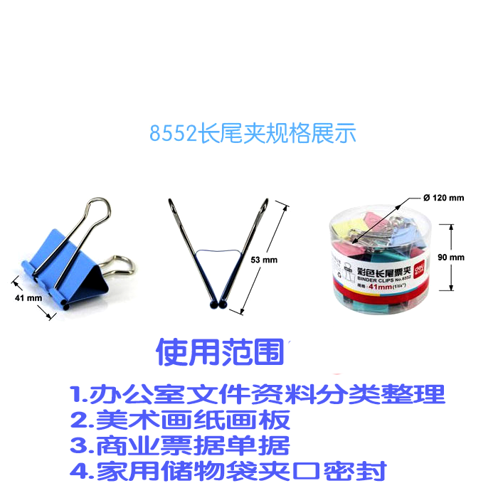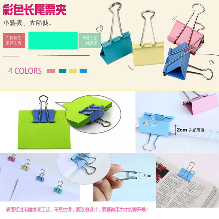 Deli color long tail clip dovetail clip Paper bill iron clip Document clip Color multi-purpose clip