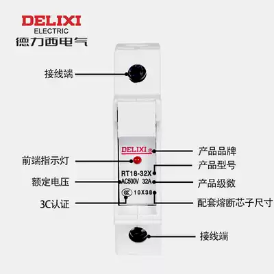 Delixi fuse base Cylindrical cap fuse holder RT18-32X 1P with lamp without fuse core