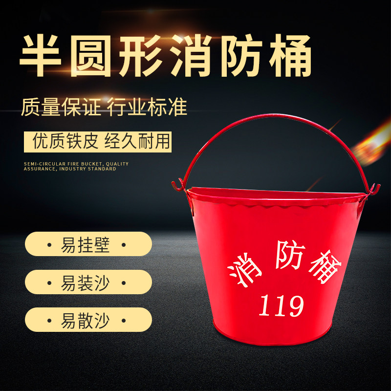 Thickened Firefighting Sand Barrel Yellow Sand Emergency Bucket Semi-circle Round Baking Varnish Emergency Iron Barrel Petrol Station Fire Fighting Equipment