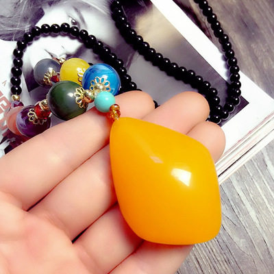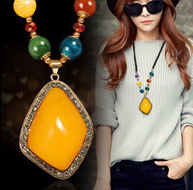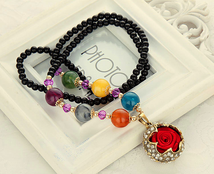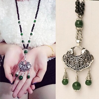 Autumn Winter Fashion 100 Hitch Dressing Necklace Long Version Necklace Woman Retro National Wind String Beads Flowers Pendant Adornment Pendant