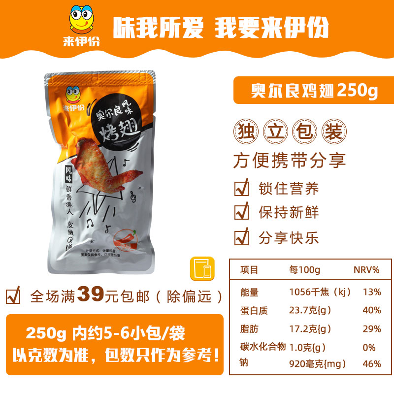 Coming to Iportions Orléans Flavor Chicken Wings 250g Fresh Tender Meat Casual Snacks Roast Chicken Wings Ready-to-eat Bags Bulk