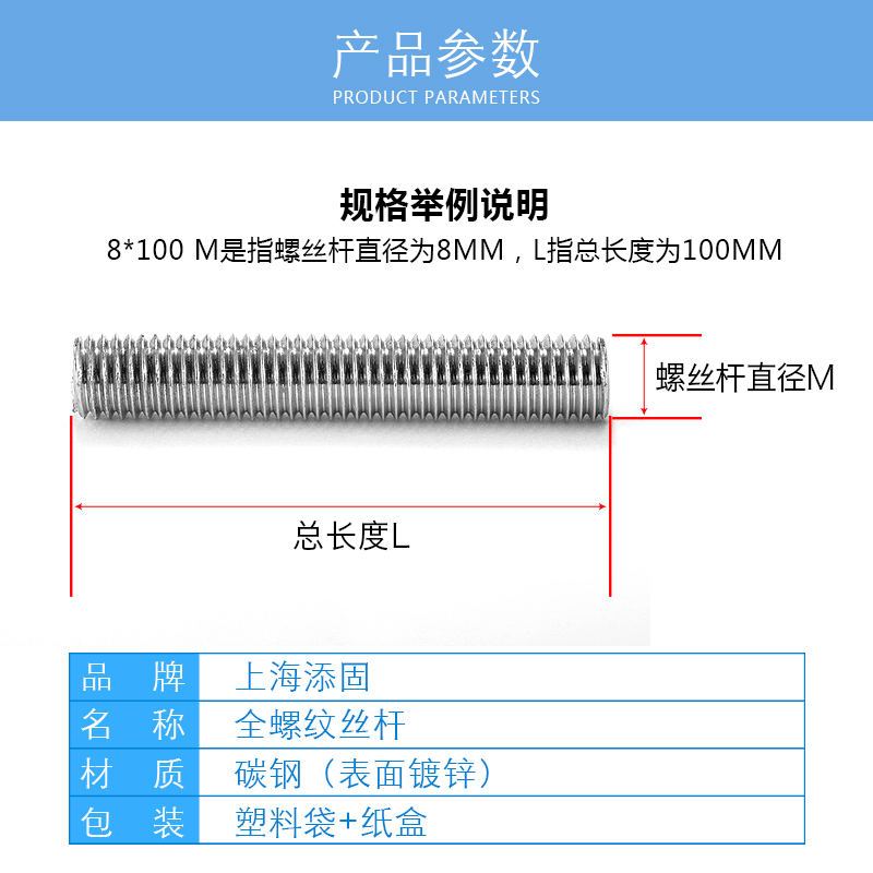 Customizable fully threaded wire rod 1 m * 3 m suspended ceiling tooth strip National Label 4 8 8 Class galvanized through wire M3-M42