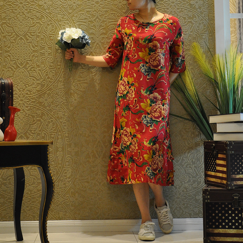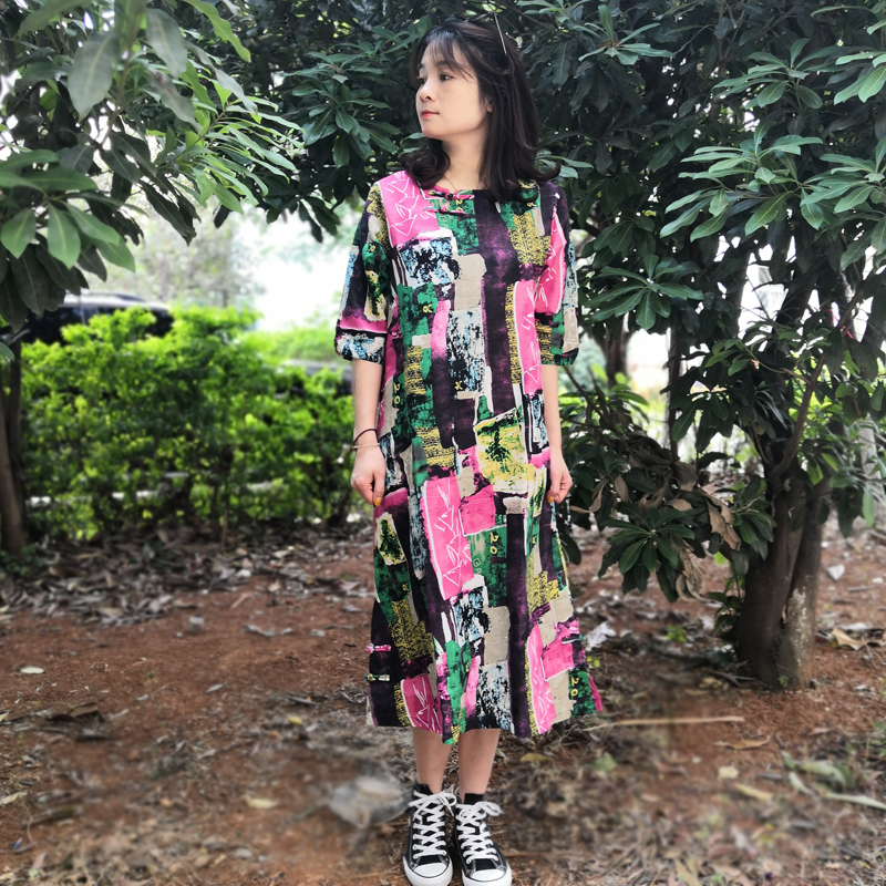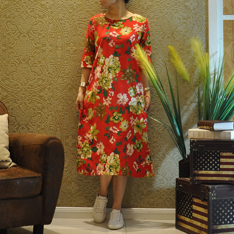 Yunnan Lijiang ethnic style new original women's cotton and linen slim fit and slim retro button dress women
