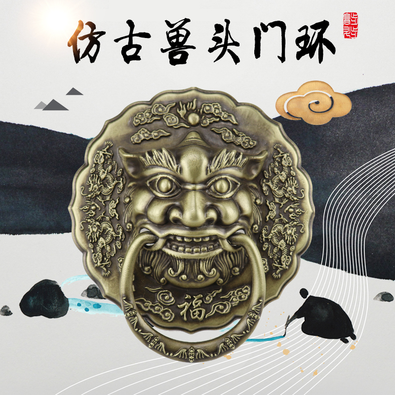 Villa door handle Beast head copper pull ring Door ring Antique solid wood door Lion head copper handle Chinese door handle