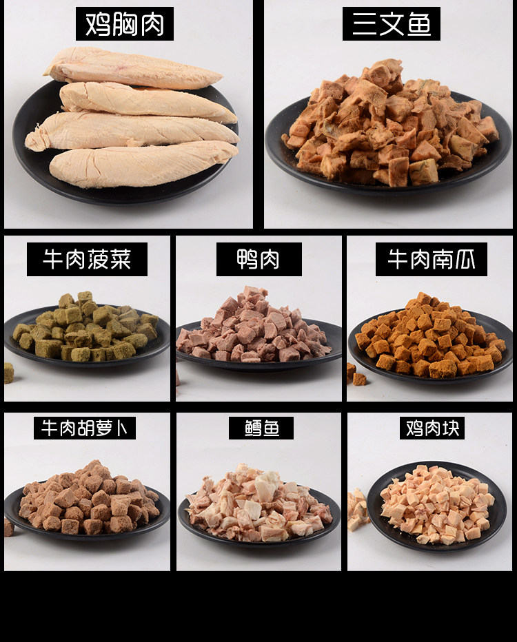 Egg grain (30g) beef grain (10g) duck meat grain (10g) chicken grain (10g) chicken liver grain (10g) cow liver grain (10g) chicken breast meat 1 block of quail 10 gr
