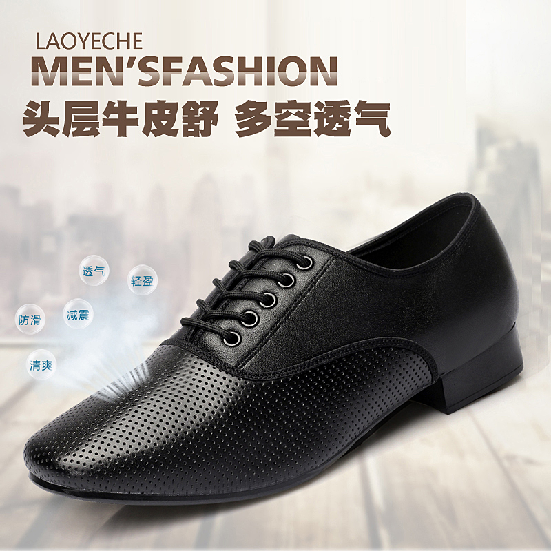 Leather modern dance shoes Men's dance shoes Soft-soled adult outdoor Latin dance Middle heel square dance friendship national standard dance