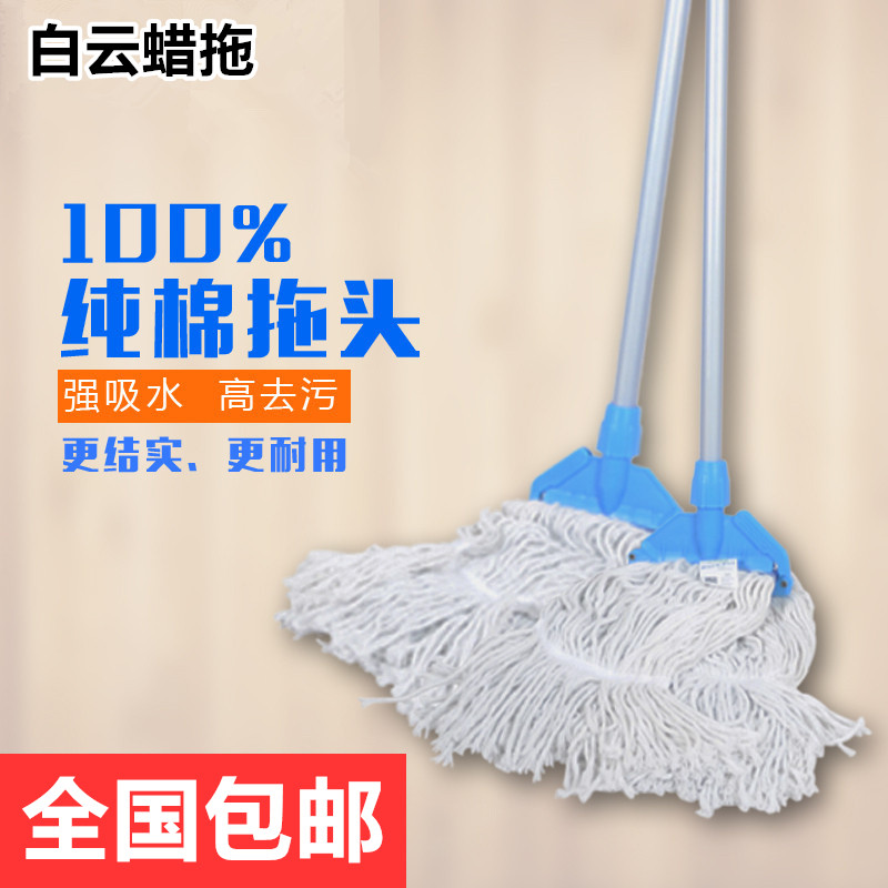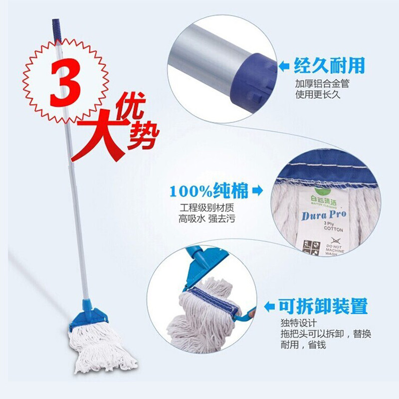 White cloud waxing mop Clip-on pure cotton yarn super absorbent Kfc mop thickened aluminum alloy hand pole pier cloth mop head