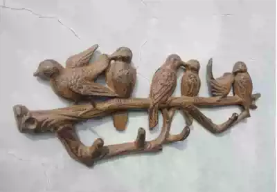 European and American countryside retro cast iron adhesive hook wall hanging wall wall coat adhesive hook clothes hook clothes hook clothes hat love bird adhesive hook