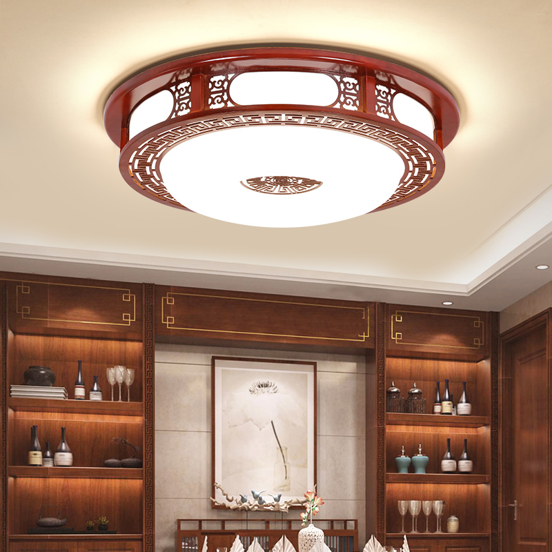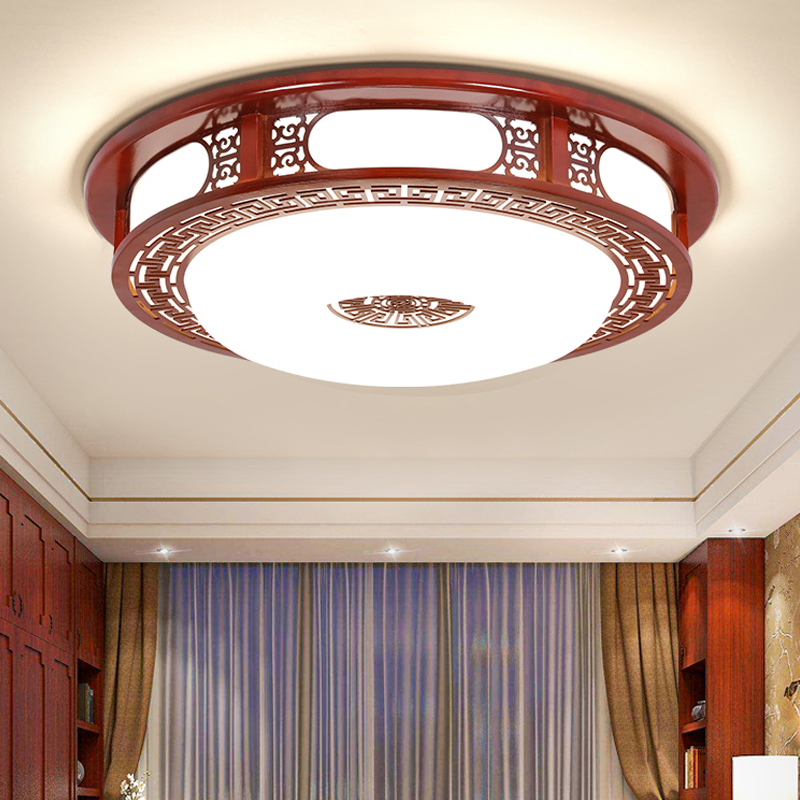 Ancient intelligent Chinese ceiling lamp round living room lamp solid wood lamp bedroom LED antique Chinese lamps Chinese style