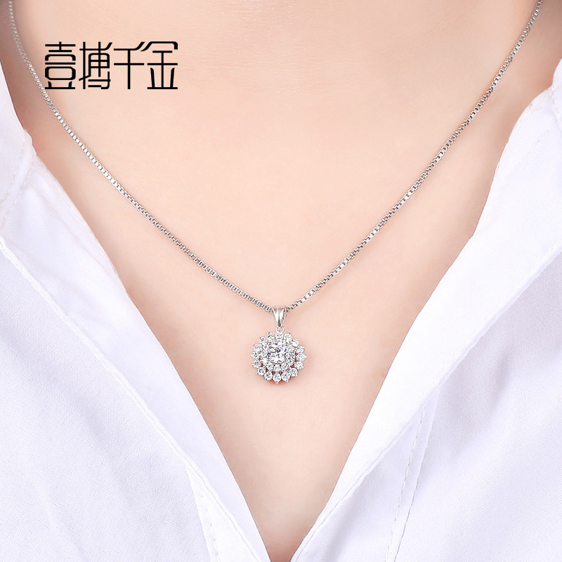 18k Gold White Gold Diamond Pendant Women's Necklace Custom Diamond Cluster Wedding Pendant