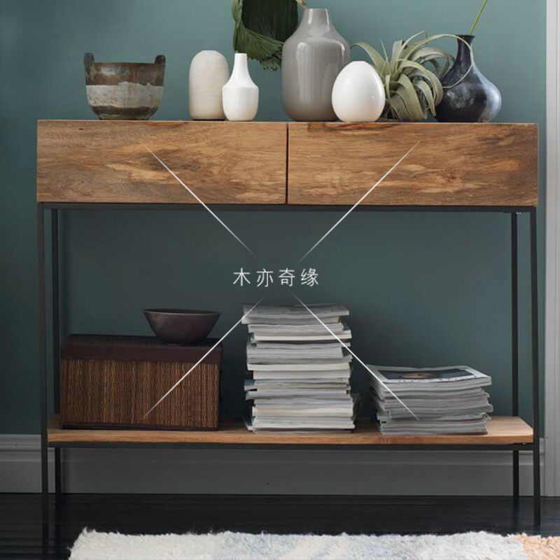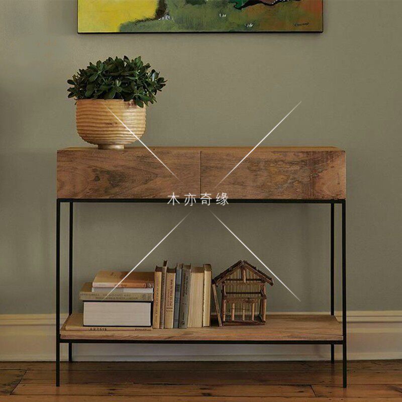 American-style porch table with drawer hallway cabinet retro wrought iron solid wood porch table partition cabinet corridor table decoration cabinet
