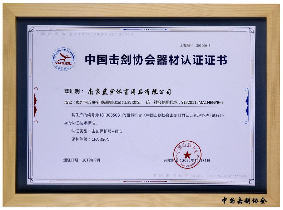 Nanjing Lanzi-350N fencing competition uniform vest CFA standard China Fencing Association certification can compete