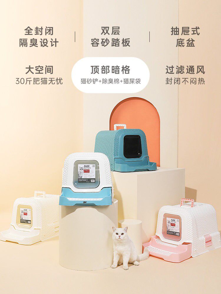 Zhongheng cat toilet fully enclosed odor-proof anti-splash double-layer cat litter basin feces basin large fat cat potty Maine supplies