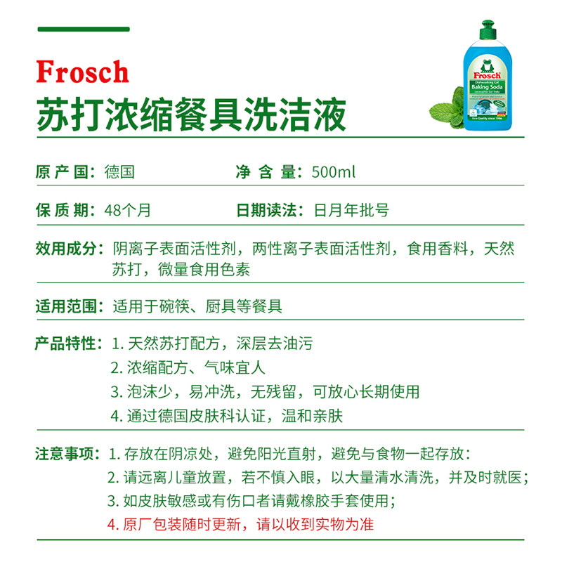 Frosch German imports do not hurt hand dishwashing liquid tableware household small bottle of soda to oil natural concentrated detergent
